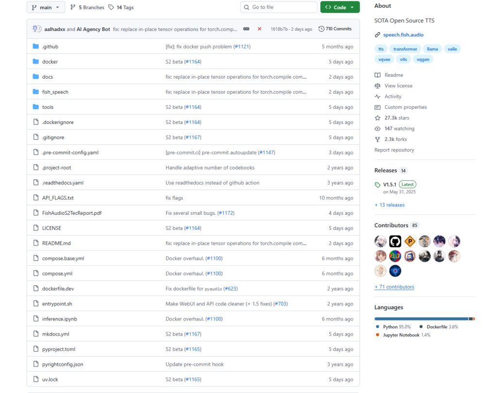 Fish Speech is a state-of-the-art text-to-speech system open-sourced by the Fish Audio team. It has already earned over 27,000 GitHub stars, making it one of the most-watched open-source TTS projects in the world.