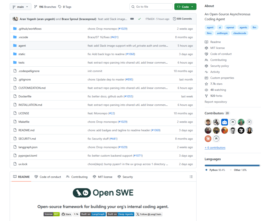 Repository: https://github.com/langchain-ai/open-swe ⭐ 5.3k | MIT License | Actively maintained