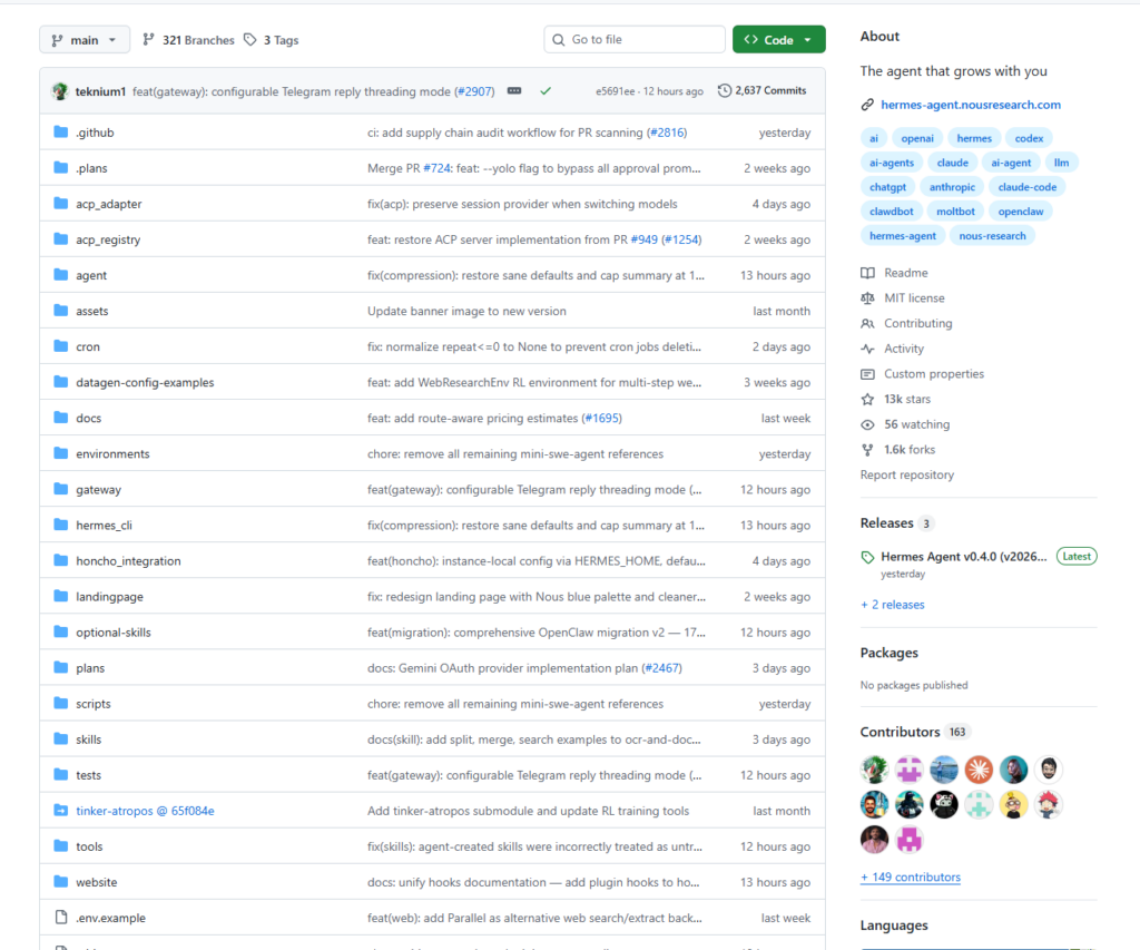 Repository: https://github.com/NousResearch/hermes-agent