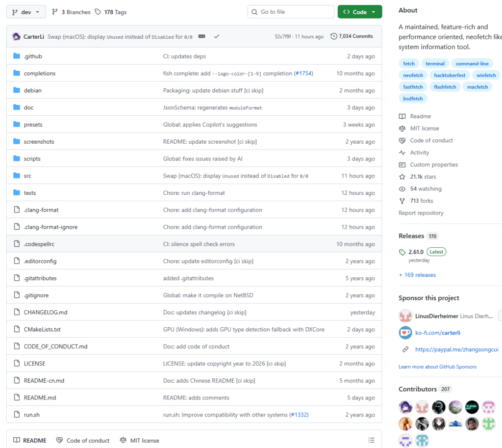 GitHub: https://github.com/fastfetch-cli/fastfetch