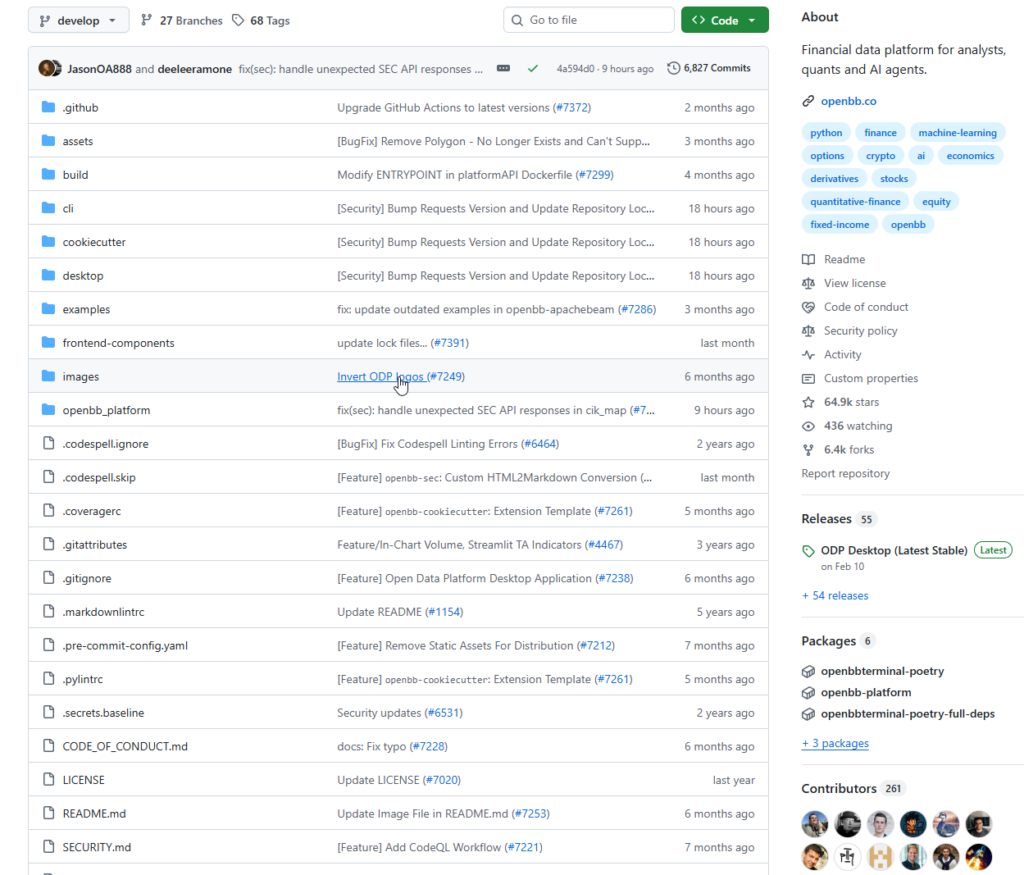 OpenBB is an open-source financial data platform designed for analysts, quantitative researchers, and AI agents. Founded in 2021, it has grown to over 64,000 GitHub Stars and is one of the most active open-source projects in the fintech space.